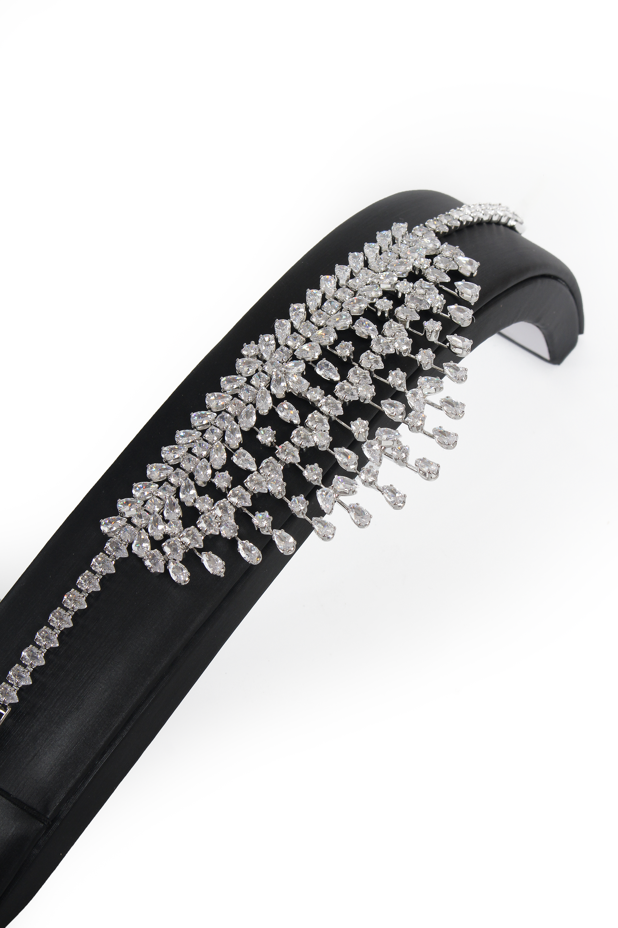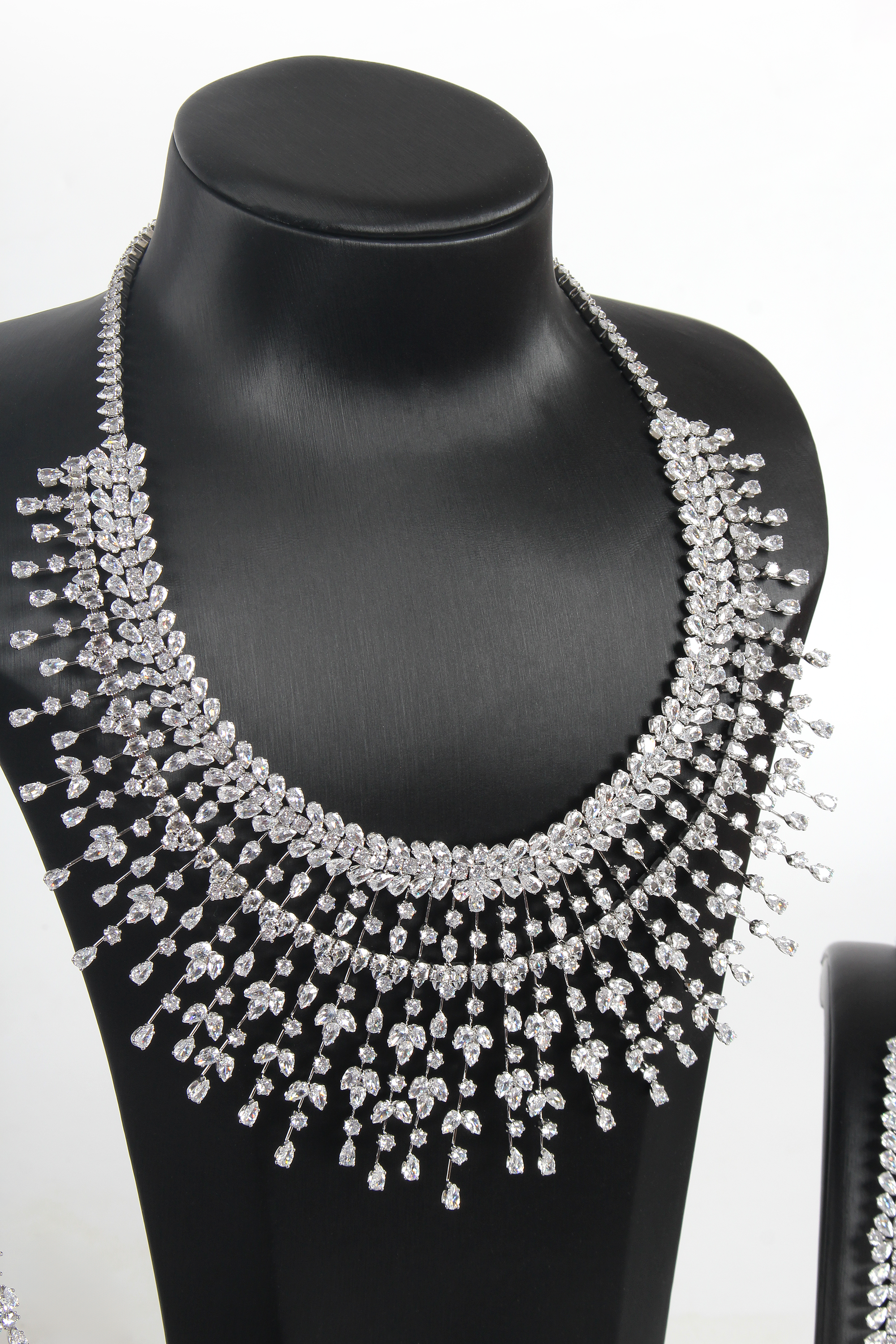 طقم زركون 4 قطع فاخر من زرتاج بتصميم فضي مشرق وأحجار زركون لامعة عالية الجودة يشمل سلسال حلق خاتم وأسوارة مطلي بالروديوم لحماية تدوم طويلاً.