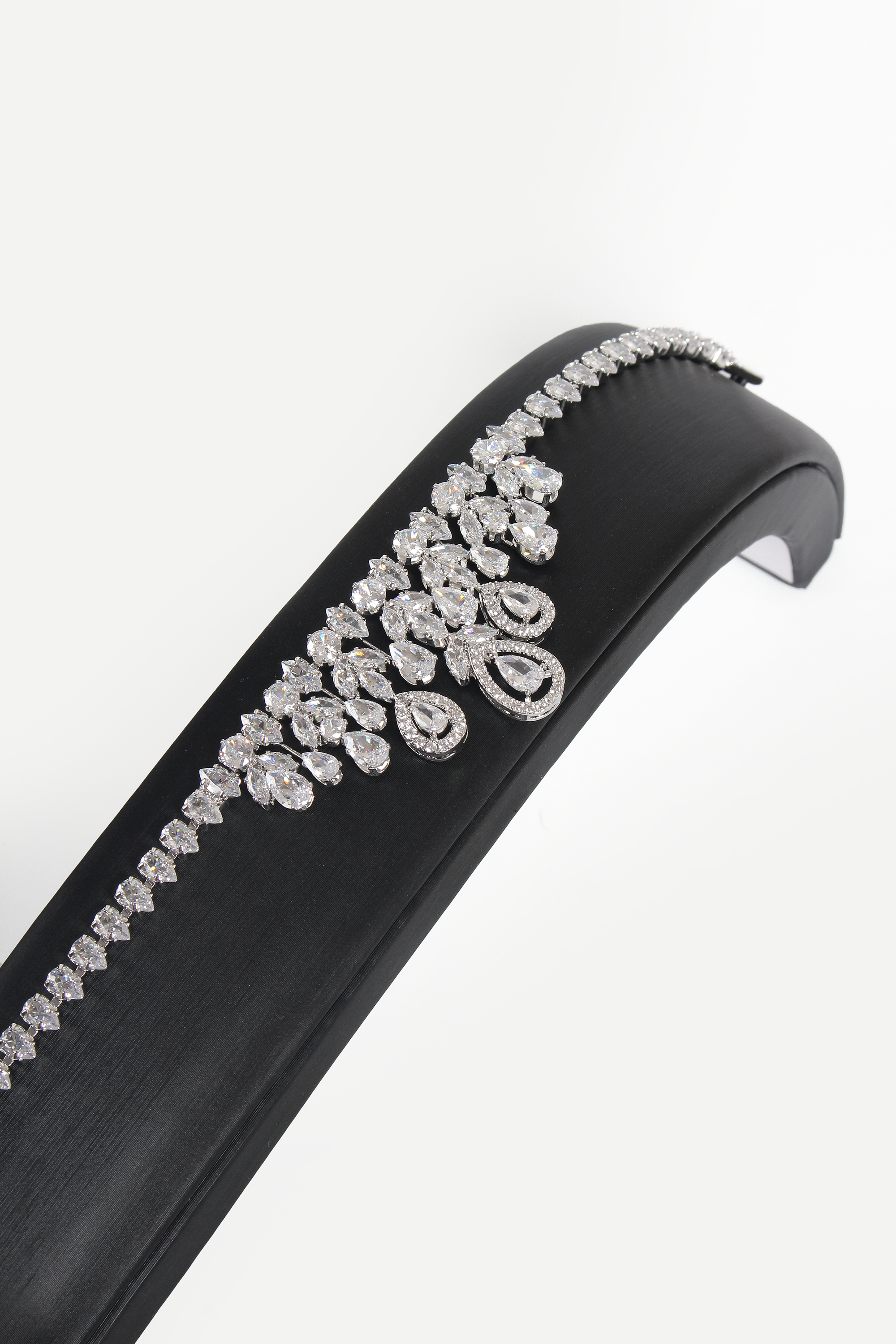 طقم زركون 4 قطع فاخر من زرتاج بتصميم فضي مشرق وأحجار زركون لامعة عالية الجودة يشمل سلسال حلق خاتم وأسوارة مطلي بالروديوم لحماية تدوم طويلاً.