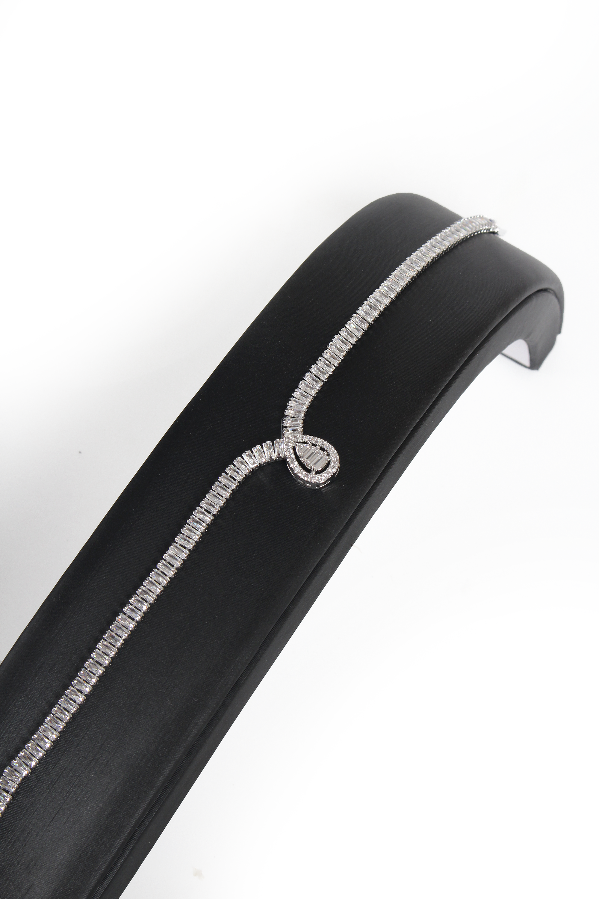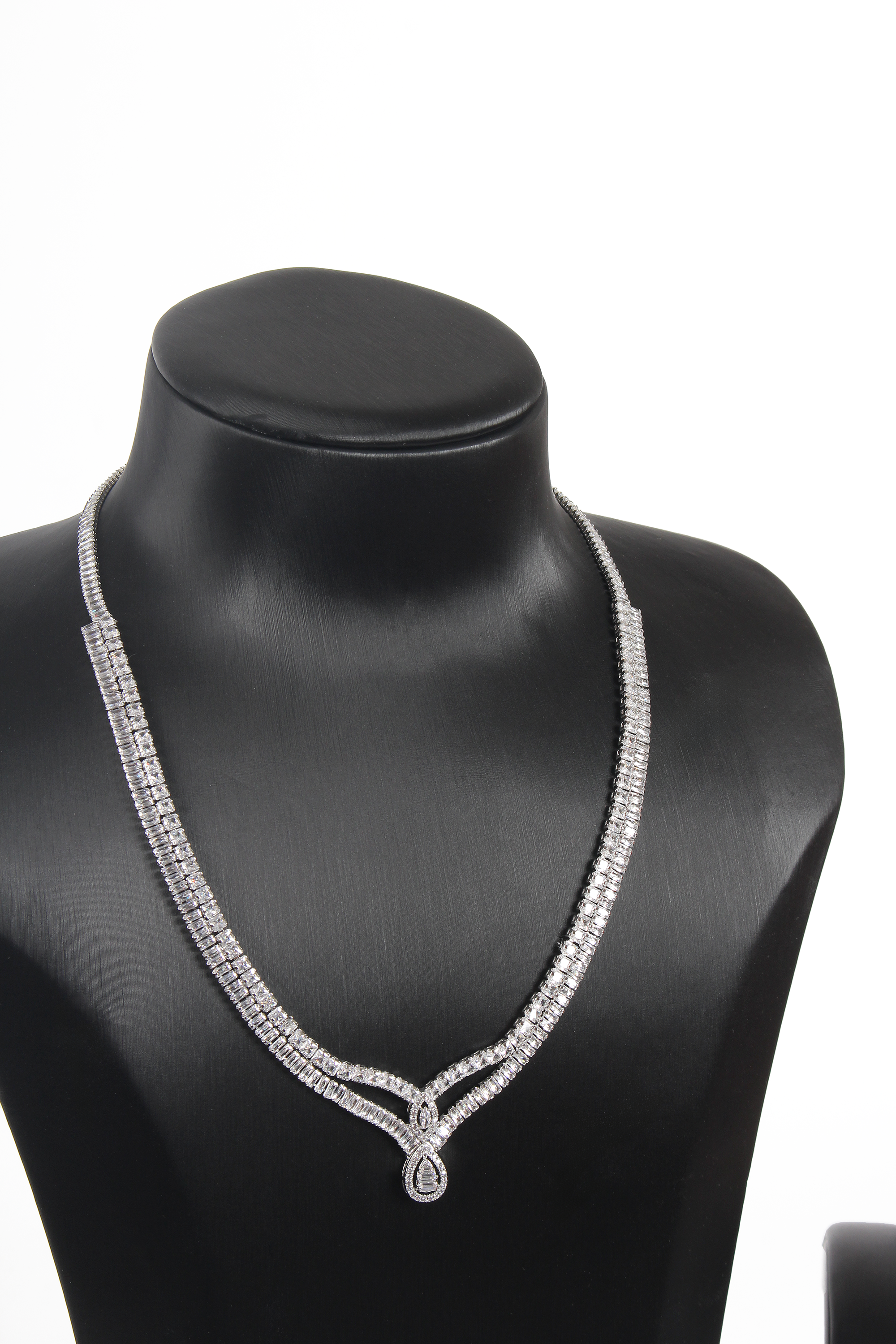 طقم زركون 4 قطع فاخر من زرتاج بتصميم فضي مشرق وأحجار زركون لامعة عالية الجودة يشمل سلسال حلق خاتم وأسوارة مطلي بالروديوم لحماية تدوم طويلاً.
